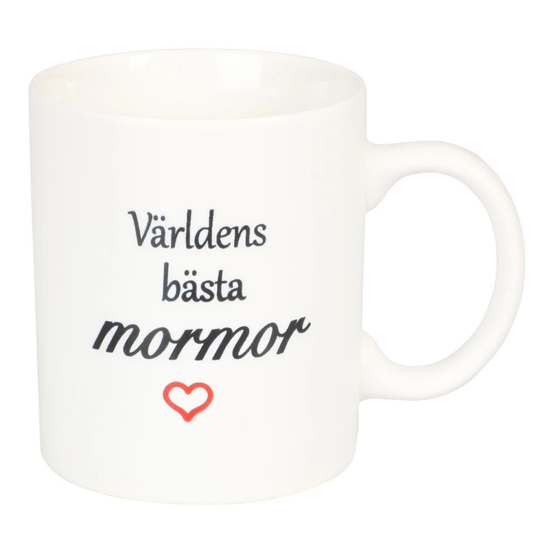 Denna eleganta keramikmugg är den perfekta gåvan för världens bästa mormor. Med en kapacitet på 350 ml och dekorerad med texten ”Världens bästa mormor” tillsammans med ett litet rött hjärta, är denna mugg både praktisk och personlig. Den är ett idealiskt val för födelsedagar, jul eller bara för att visa din kärlek och uppskattning i vardagen. Muggen är lämplig för kaffe, te och varm choklad, och kan enkelt kombineras med en chokladkaka, honungssked eller praliner för en komplett present. Dessutom tål den både diskmaskin och mikro, vilket gör den praktisk för daglig användning.