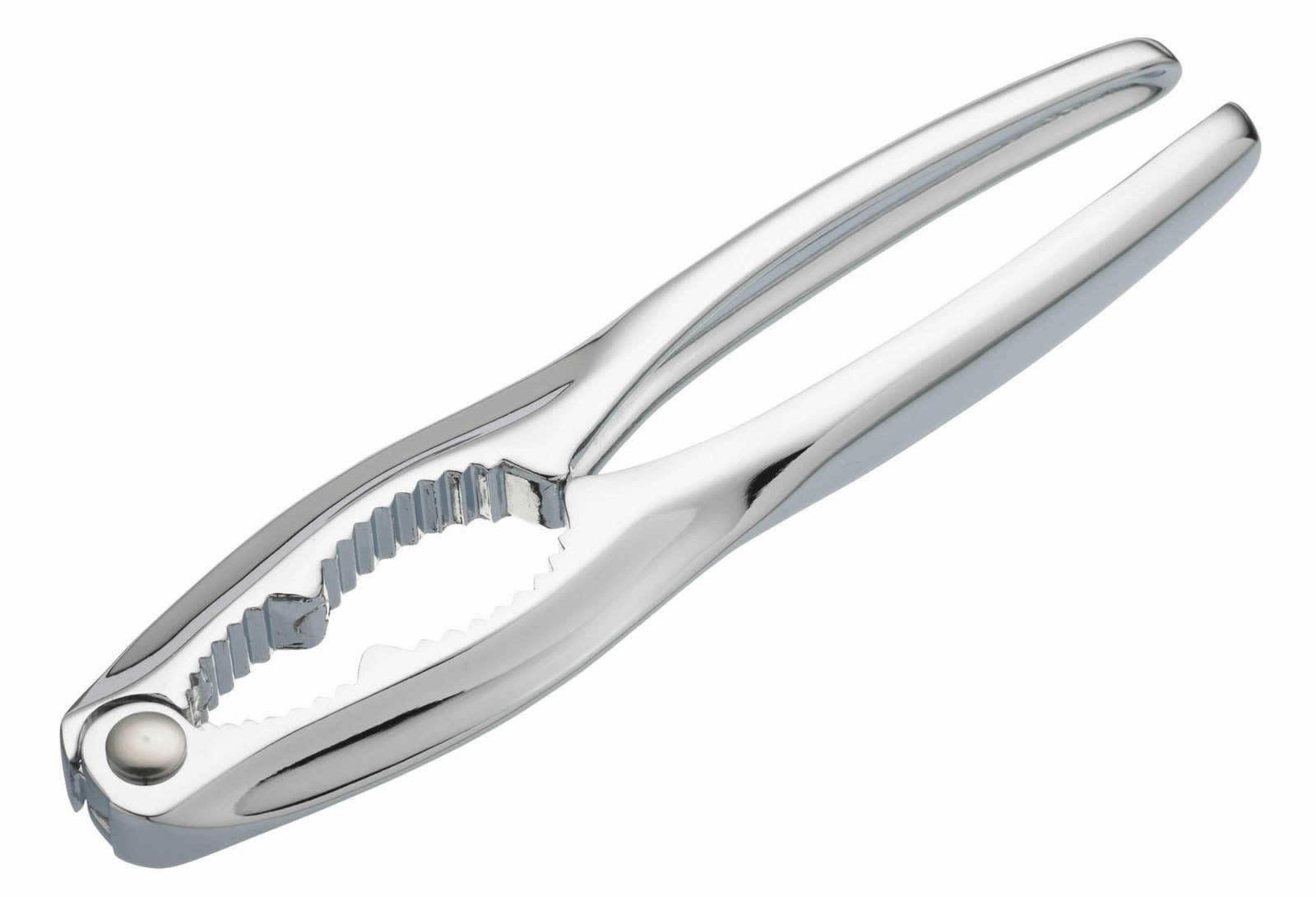 Denna klassiska nötknäppare från Kitchen Craft är perfekt för att knäcka skalet på nötter utan att skada kärnan. Dess räfflade utformning säkerställer att nöten hålls på plats och inte glider iväg, vilket gör det enkelt och säkert att knäcka nötter av alla typer och storlekar. Den kan även användas för att knäcka skaldjur som krabba och hummer. Med sin tillverkning i metall med glänsande kromeffekt är den både tålig mot slag och stötar och ett stilrent inslag på julbordet.