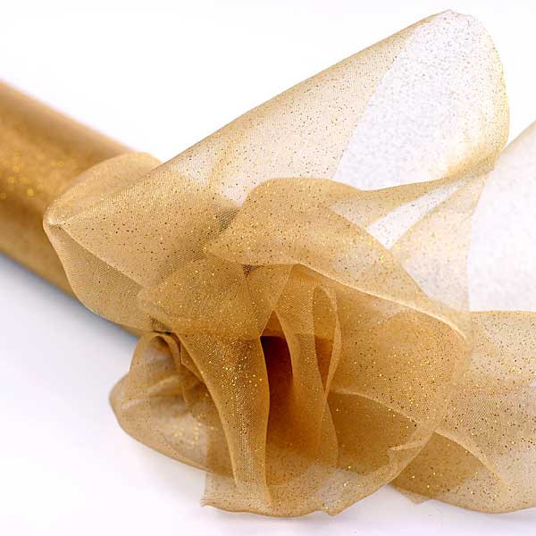 Organza, Glittrig Guld, 0.36×9 m – PartyDeco
