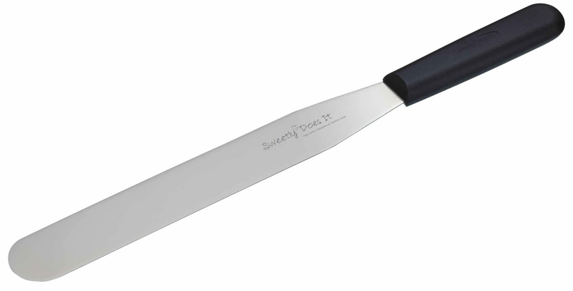 Den 25 cm långa palettkniven från KitchenCraft har ett blad i rostfritt stål och ett handtag i svart plast. Den är idealisk för att sprida ut fyllning i tårtor eller breda ut smörkräm och grädde jämnt. Med en rundad topp och inga vassa kanter är den bekväm att använda och går enkelt att rengöra i maskindisken.