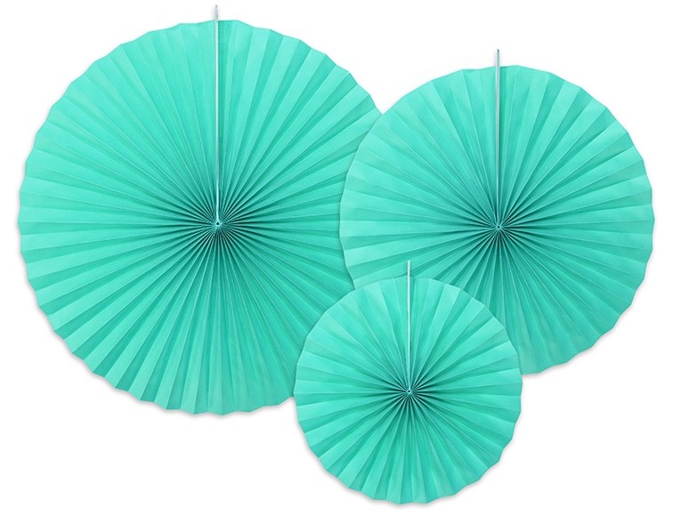Pappersrosetter Turkos, 3 storlekar – PartyDeco
