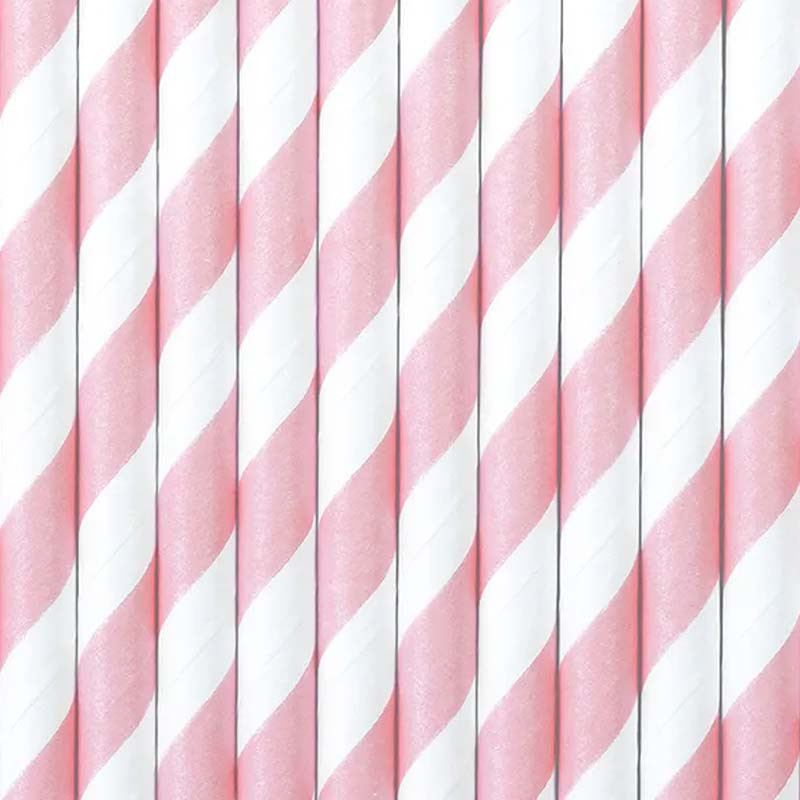Dessa ljusrosa pappersugrör med klassiska vita ränder är den perfekta detaljen till kalas, babyshower eller dop. Sugrören är tillverkade i papper och fungerar även som fina pinnar till cake pops – perfekt när du vill matcha temat in i minsta detalj. Matcha med engångstallrikar, muggar och servetter i samma färgskala för en komplett dukning!