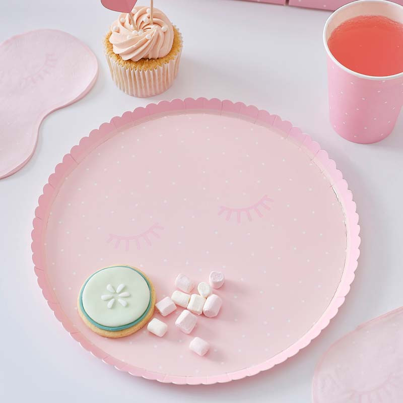 Dessa papperstallrikar i ljusrosa med motiv av sovande ögon och vita polkadots är perfekta för babyshower, dop, kalas eller möhippa. Med en diameter på 25 cm är de idealiska för att servera tårta, cupcakes eller smörgåstårta. Varför inte använda dem för picknick med paj eller sallad, eller för att servera snacks som chips, frukt eller grönsaksstavar? Med 8 tallrikar i varje förpackning är de även idealiska för babyshower för servering av bakverk och tilltugg.