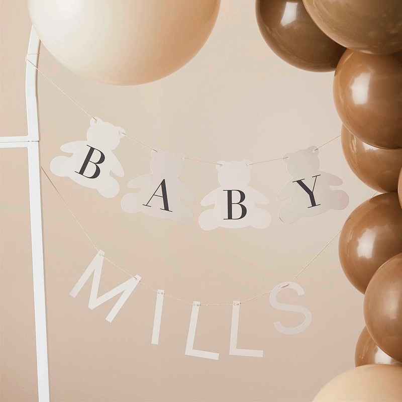 Dekorera din babyshower eller dop med dessa söta vimplar med teddybjörnar och din personliga namntext. Varje förpackning innehåller 2 x 2 m vimplar med bokstäver från A-Z. Vimplarna är återvinningsbara och FSC-certifierade för hållbarhet.