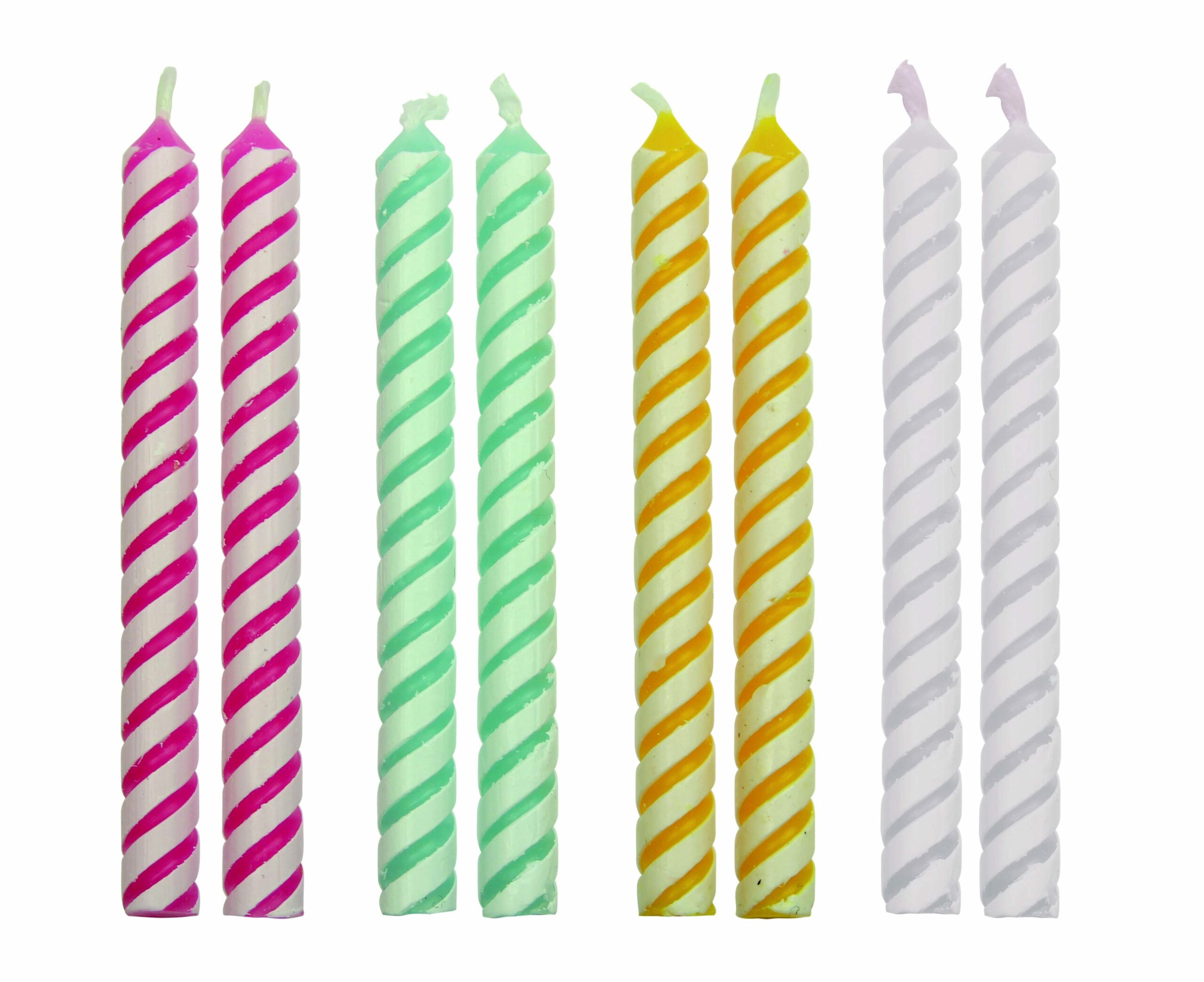 Dekorera tårtor och cupcakes med dessa fina, randiga tårtljus från PME. Färgerna inkluderar rött, blått, vitt och gult. Med totalt 24 stycken ljus, varav 6 stycken i varje färg, är det en perfekt dekoration för din nästa fest eller bakverk.