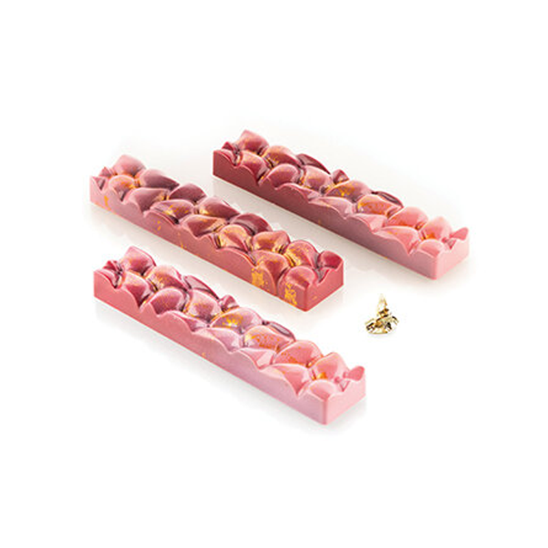 Skapa vackra praliner med formen CH009 ”Goccia B” från Silikomart. Denna pralinform är framtagen av Silikomart och Kirsten Tibballs. Alla komponenter i polykarbonat/ABS-material i denna form har uppgraderats till TRITAN™-material. Tritan är inte bara BPA-fritt, utan det är också fritt från BPS och alla andra bisfenoler. Kirsten Tibballs, utsedd av MasterChef Australia som ”The Queen of Chocolate”, är en av de mest älskade och hyllade konditorerna och chokladmästarna i sitt land. Hennes önskan är att förmedla sin kunskap och kompetens till alla – oavsett amatörer eller proffs. Hon gör det på olika sätt: genom böcker, TV-program och bakverks- eller chokladklasser. Pralinform: Små chokladkakor / bars Storlek form: 275 x 175 x 25 mm Antal praliner: 8 chokladkakor / bars Storlek per pralin: 120 x 25 x 16 mm Volym färdig pralin: 30 ml