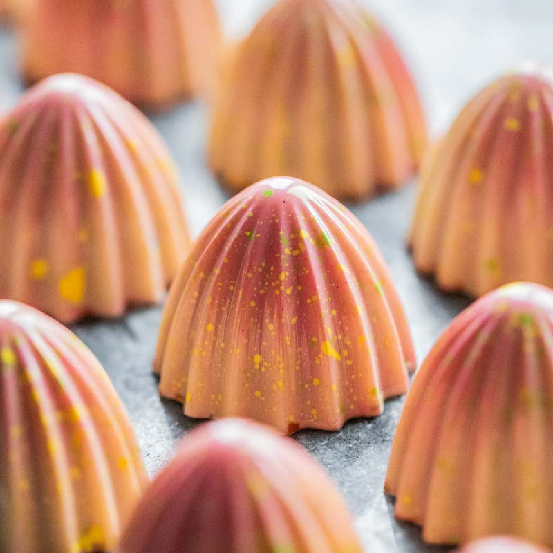 Den professionella gjutformen för praliner, även kallad ”Juicepressen”, är designad tillsammans med det Nederländska konditorlaget för att skapa vackra och läckra praliner hemma. Tillverkad av hållbart polykarbonat och med utrymme för tre olika fyllningar, är denna pralinform perfekt för både nybörjare och experimenterade pralinmakare.