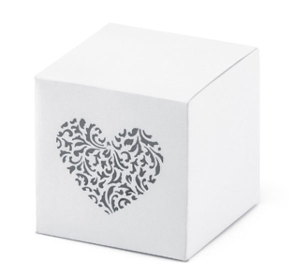 Dessa små presentaskar i vit papp med lite skimmer och ett vackert hjärta framtill är perfekta för att förvara godis eller andra små gåvor. De är även idealiska för att användas som en elegant dukningsdetalj vid till exempel bröllop. För en extra touch kan du fästa ett fint sidenband runt asken.