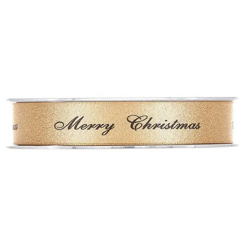 Dekorera dina julklappar med stil med detta vackra satinband med texten ”Merry Christmas” i guld. Bandet är 10 mm brett och 25 meter långt, perfekt för att ge dina presenter en festlig touch.