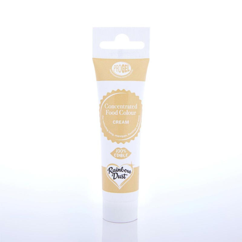ProGel Cream från Rainbow Dust är en högkoncentrerad geléfärg som ger djupa och klara nyanser med minimal mängd färg. Den är perfekt för att färga sugarpaste, marsipan, gum paste, frosting och smörkräm. En tub räcker väldigt länge och förpackningen är smidig för enkel användning och förvaring.