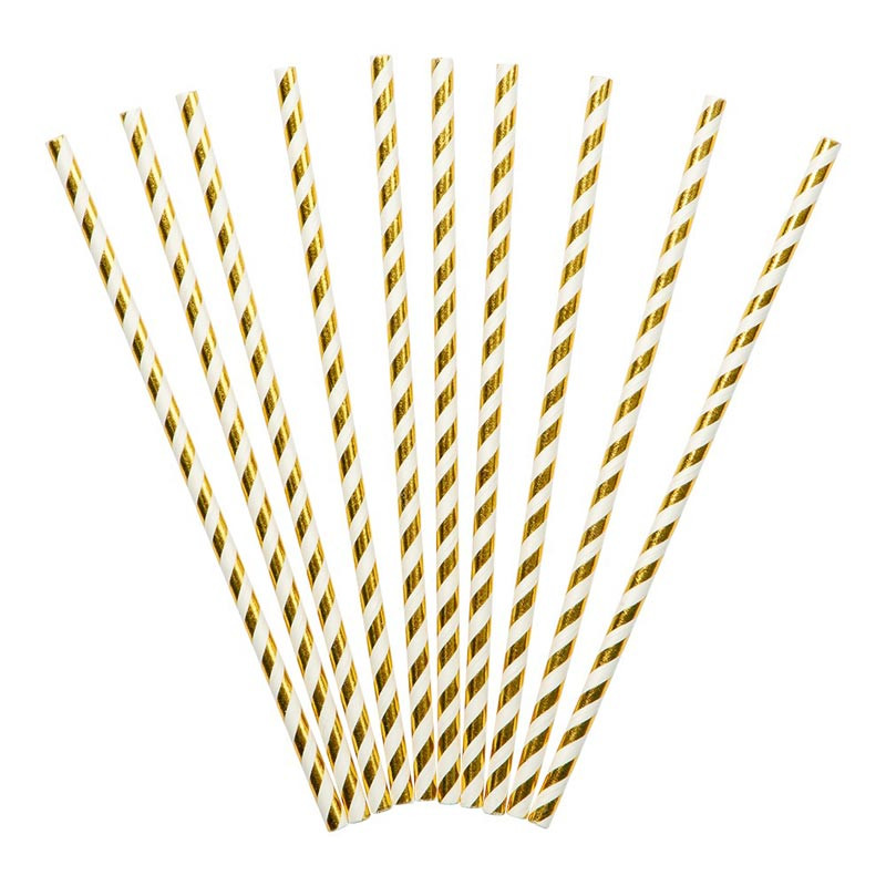 Randiga papperssugrör guld/vit, 10-pack