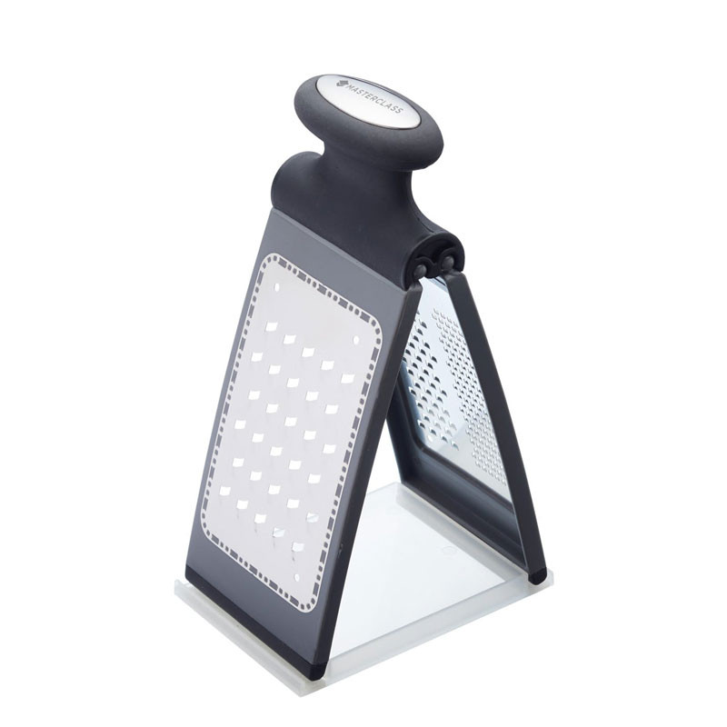Masterclass hopfällbara rivjärn ger tre rivfunktioner i ett – fint, grovt och zest. Med superskarpa, etsade blad i rostfritt stål kan du enkelt riva allt från parmesan och morötter till citrus och choklad. Den smarta designen gör att rivjärnet tar minimalt med plats i köket, och den halkfria plastbasen fungerar både som bladskydd när rivjärnet fälls ihop och som behållare för små mängder rivna nötter, zest etc. Ett praktiskt och stabilt verktyg för precisionsrivning av alla dina ingredienser. Rivjärnet tål diskmaskin och kan enkelt vikas ner för platt förvaring.