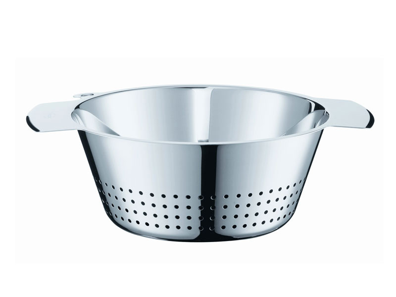 Durkslaget från Rösle är tillverkat av rostfritt stål och är en stadig produkt som passar perfekt för att hälla bort pastavattnet eller skölja sallad. Med jämnt fördelade hål på sidorna och i botten garanteras snabb och effektiv dränering. Högkvalitativt och praktiskt köksredskap.