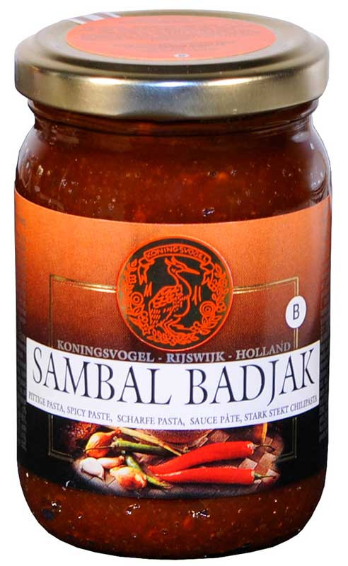Sambal Badjak är en indonesisk stekt chilipasta med en balanserad sötstark smak av chili och lök. Perfekt för att lyfta fram smakerna i grytor, wok och risrätter eller som ett kryddigt tillbehör vid servering. Den kombinerar karamelliserad lök, vitlök och chilins hetta för en djup och komplex smakprofil.