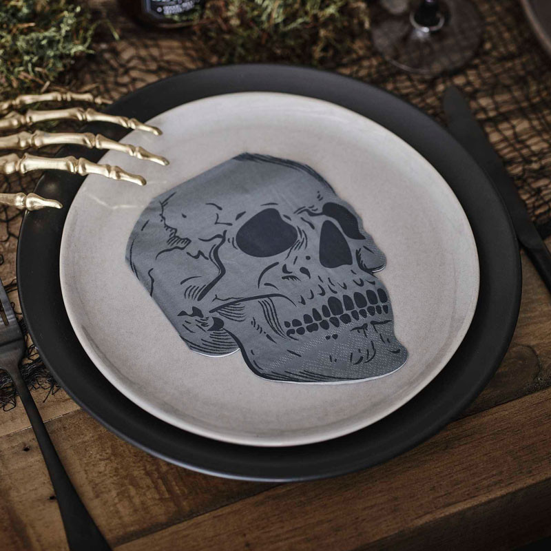 Duka med dessa kusliga döskalle servetter från Ginger Ray. Servetterna är i svart och grå färg och har form och utseende av en döskalle. Perfekt dekoration till halloween, piratkalaset eller temafesten!
