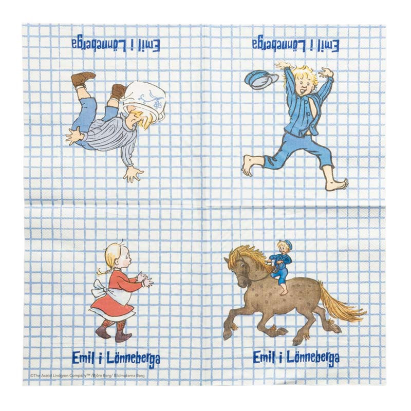 Dessa roliga servetter med motiv från Emil i Lönneberga är perfekta för barnkalaset! Mixa och matcha dem med tallrikar och muggar för ett festligt Emil-kalas!