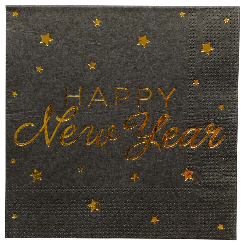 Servetter Happy New Year, svart & guld