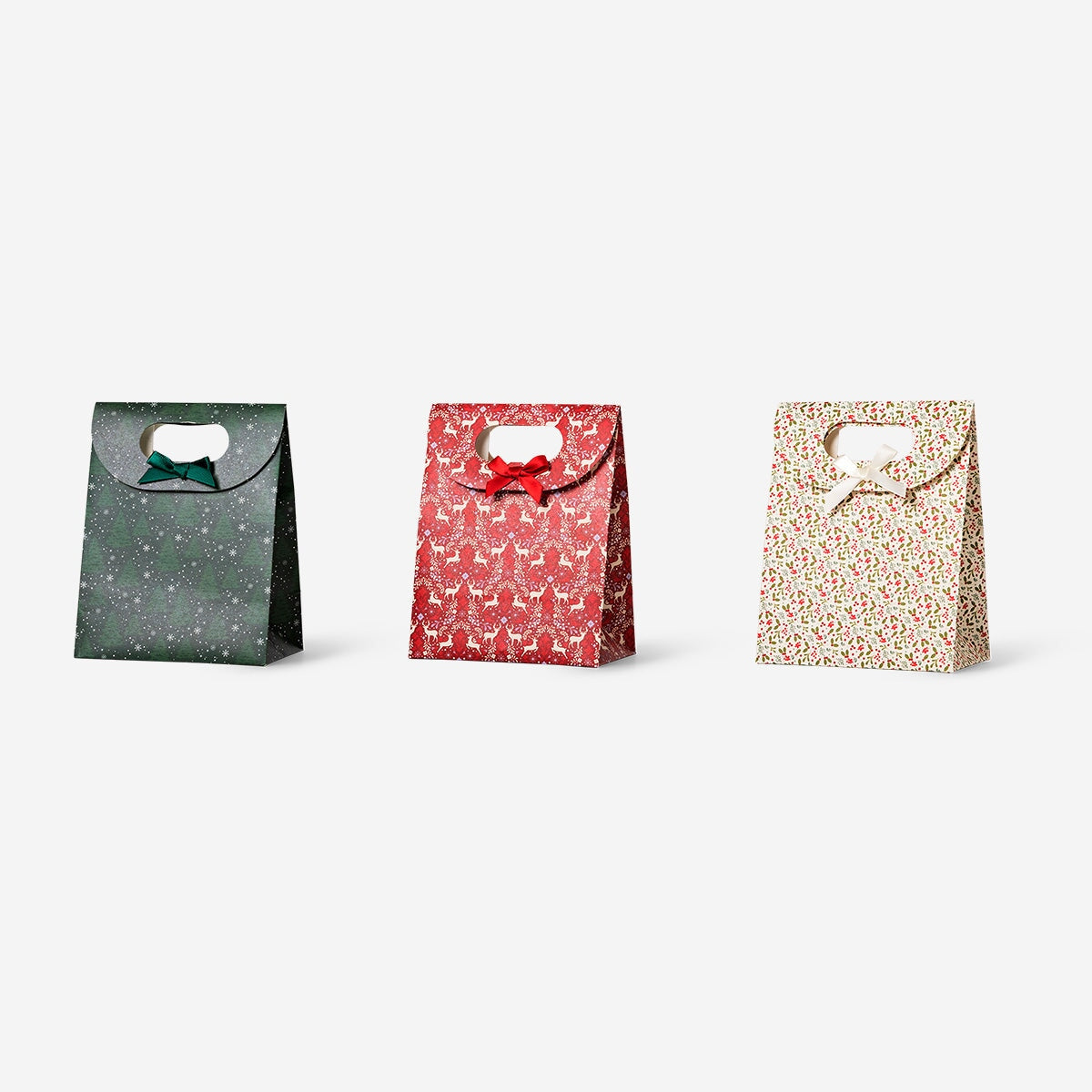 Denna uppsättning små presentpåsar är perfekt för omtänksamma gåvor och festliga överraskningar och ger din paketering en säsongsbetonad charm. Varje påse har en flerfärgad juldesign och rymmer upp till 1 kg, perfekt för sötsaker, accessoarer eller små minnessaker. Med måtten 8,1 x 16,3 x 12,5 cm är de ett kompakt men ändå iögonfallande sätt att presentera gåvor. De inbyggda handtagen gör dem lätta att bära, medan den vikbara förslutningen håller innehållet säkert. Ett praktiskt och glatt komplement till dina julförberedelser eller årets julklappar.