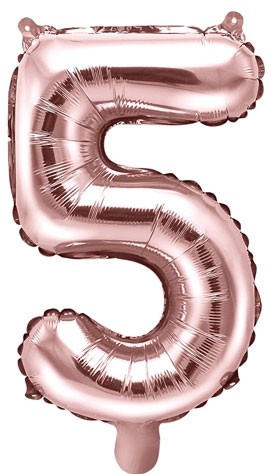 Denna sifferballong i nummer 5 är tillverkad av roséguldig folie och har en självslutande ventil. Den är perfekt för event, födelsedagskalas och fest och fylls enkelt med luft.