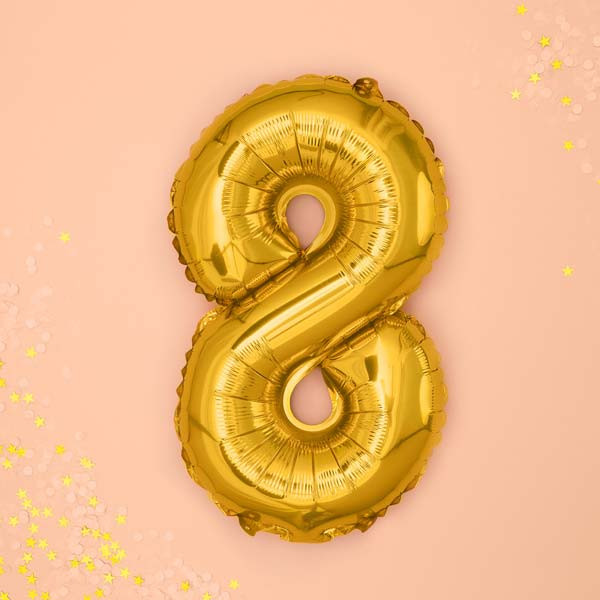 Sifferballong 8, guld, 35 cm – PartyDeco