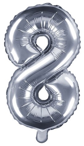 Denna sifferballong i form av åttan är tillverkad av silverfärgad folie och har en självslutande ventil. Perfekt för att dekorera event, födelsedagskalas och fester! Fyll den enkelt med luft för att skapa en glänsande och festlig atmosfär.