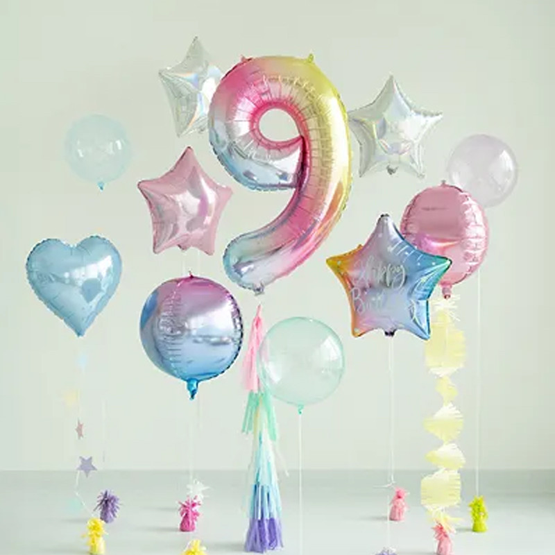Sifferballong 9, Skimrande Pastell, 86 cm – PartyDeco