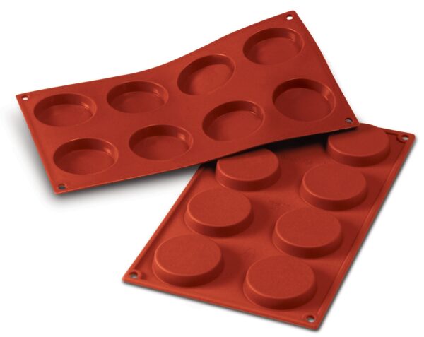 Denna Silikomart Silikonform är perfekt för att skapa vackra desserter som glass, pannacotta och choklad. Tillverkad av 100% platinumsilikon, tål den temperaturer från -60 grader till +230 grader, samt mikrovågsugn och diskmaskin. Formen har 8 st gropar med en diameter på 6 cm och ett djup på 2 cm, vilket ger en total volym på 8 x 35 ml.