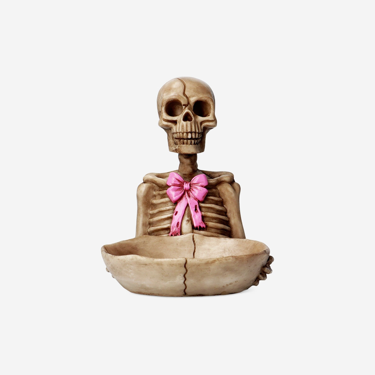 Skapa en kuslig atmosfär på ditt Halloween-fika med denna charmiga skelettskål. Perfekt för att servera godis, snacks eller läskiga godsaker, den är både dekorativ och funktionell, med en touch av udda charm som säkerligen kommer att underhålla dina gäster.