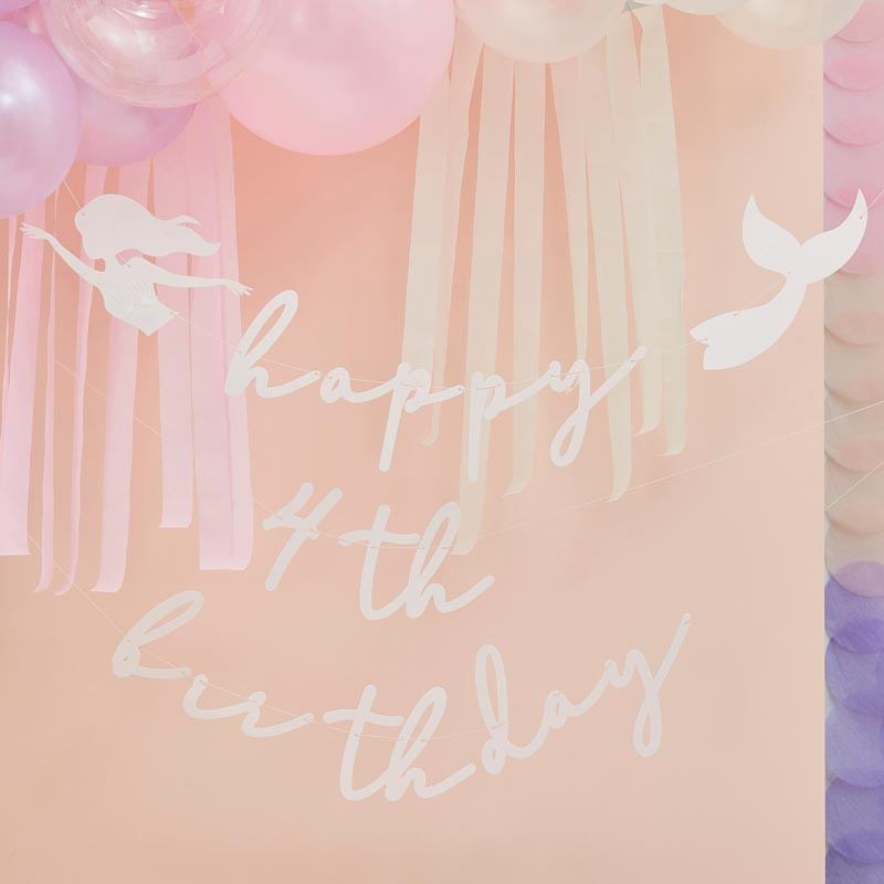 Dekorera sjöjungfru-kalaset med denna fina personifierbara girlang! Du kan själv välja vilken siffra som ska hänga i vimpeln. Återanvänd år efter år! Skapa en spännande undervattenvärld med denna anpassningsbara sjöjungfrugirlang. Antal: 1 vimpel. Siffrorna 0-9. Bokstäverna st, nd, rd och th. En sjöjungfru i 2 delar. 4 m snöre. Motiv: Sjöjungfru och siffror. Färg: Skimrande och rosa.