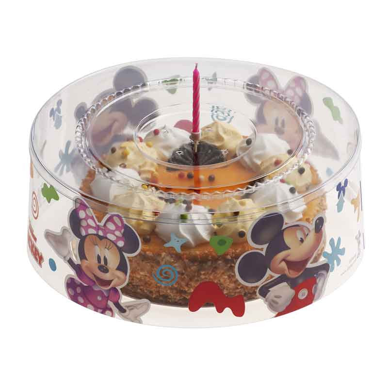 Denna dekorativa skydds- och lockset för tårtor med motiv av Musse Pigg är perfekt för att hålla din tårta fri från baciller när det är dags att blåsa ut ljusen. Med ett tårtskydd som fästs runt om tårtan och ett lock med plats för 5 tårtljus på toppen kan du säkert och stilfullt skydda din tårta.