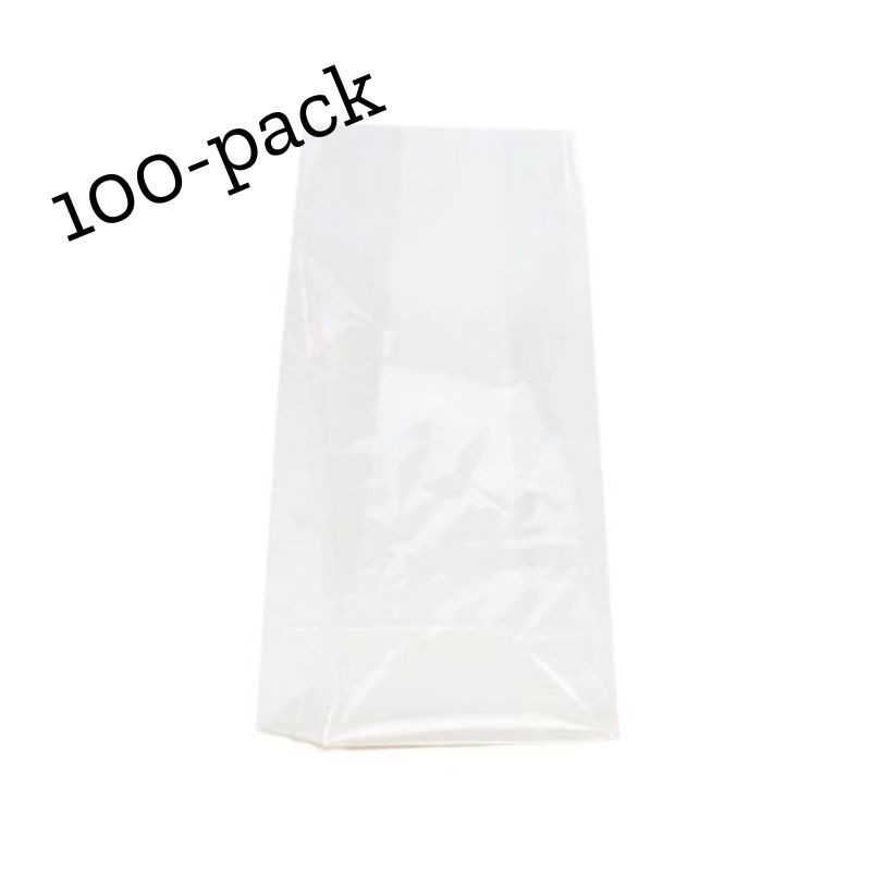 Små cellofanpåsar med botten 100-pack – 8 x 4,5 x 17 cm
