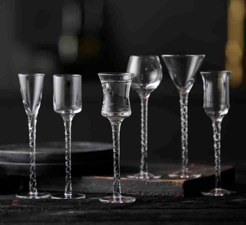 Dessa eleganta snapsglas på fot är perfekta för att servera rom eller snaps på ett stilfullt sätt. Varje glas är 18 cm högt och kommer i en förpackning med 6 stycken. De är tillverkade av munblåst glas och har sex olika unika former med en vriden fot. Var och en av dessa glas rymmer mellan 2,5 och 5 cl och är designade för att ge en lyxig känsla till din dryckesupplevelse. Dessa snapsglas är även tål maskindisk vilket gör dem praktiska och enkla att rengöra.