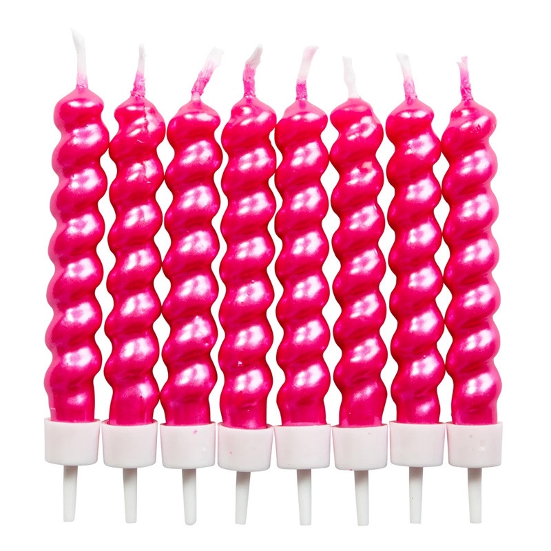 Dekorera din tårta eller cupcakes med dessa vackra snurrade tårtljus i en glamorös rosa färg. Med ett skimrande rosa skimmer kommer ljusen att lysa upp vilket kalas som helst, oavsett om det är en födelsedag, möhippa eller babyshower.