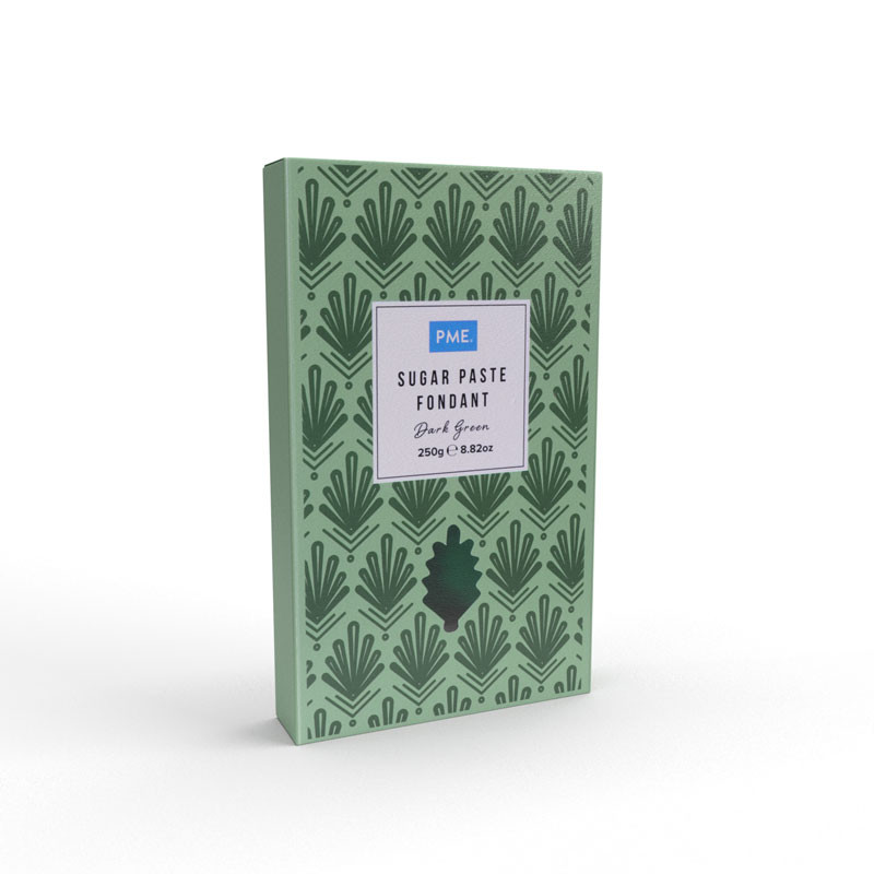 Den mörkgröna sockerpastan från PME är perfekt för att täcka tårtor och skapa vackra figurer. Den är enkel att använda och har en superstretchig och mjuk konsistens som gör det lätt att kavla och forma. Dess sammetslena yta ger en elegant finish till dina bakverk.