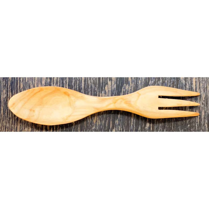 Denna kombinerade gaffel och sked – spork – är tillverkad av slitstarkt körsbärsträ och erbjuder en praktisk lösning för camping, husbilar och båtar. Med sin platsbesparande design är den både behändig och tidlös, samt ett mer hållbart alternativ.