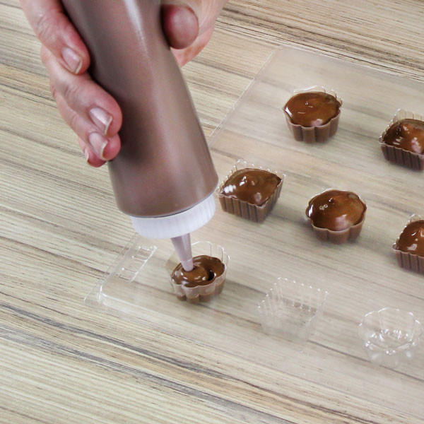 Denna plastflaska från PME är perfekt för att göra godis utan kladd. Med denna flaska kan du smälta choklad direkt i den genom att placera den i en skål med hett vatten. Se till att värmen fördelas jämnt genom att vrida på flaskan med jämna mellanrum. Kom ihåg att vattnet kommer att vara varmt. Efter smältningen kan du skapa dina egna chokladdekorationer eller chokladgodisar!
