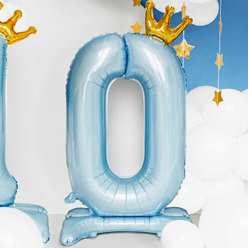 Den stora stående sifferballongen i blått med en guldkrona på, som har siffran 0, är en imponerande dekoration på fest, kalas och jubileum. Med en höjd på hela 84 cm kan den placeras på golvet eller bordet för att skapa en festlig atmosfär. Den självförslutande ventilen gör det enkelt att fylla ballongen med luft och den kan stå stadigt utan att behöva helium. Kombinera den med andra siffror för att skapa det perfekta talet för din speciella händelse.