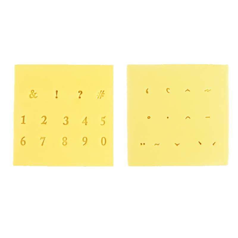 Med stämpelsetet siffror & specialtecken från PME kan du enkelt skapa de meddelanden du önskar på dina bakverk och dekorationer. Stämplarna är gjorda av gul transparent plast för enkel placering av siffror och tecken. Förvaras smidigt i en fin förvaringslåda för återanvändning. Perfekt för användning på sockerpasta, marsipan och modelleringschoklad.