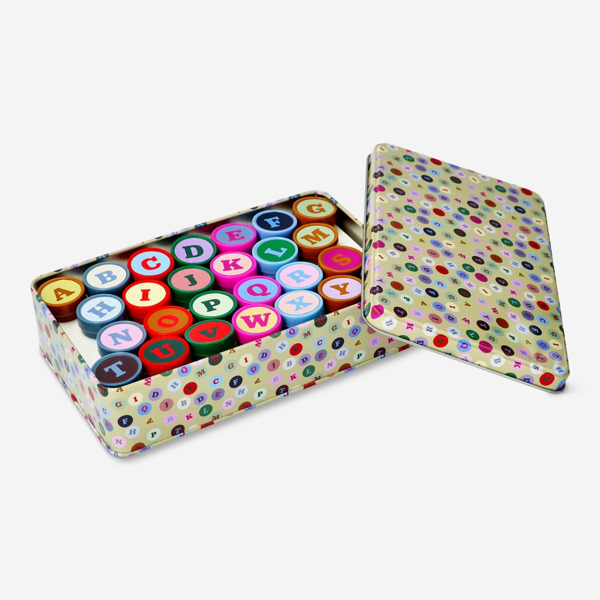 Ge dina pysselprojekt en personlig touch med dessa stämplar med engelskt alfabet. Setet innehåller 26 stämplar, var och en med en unik bokstav. Stämplarna ligger i en 3,8 x 18 x 11 cm stor plåtlåda och är organiserade och lätta att förvara. Oavsett om du vill lägga till titlar, initialer eller kreativa mönster ger dessa stämplar oändliga pysselmöjligheter. Lyft dina konstnärliga skapelser med dessa roliga, flerfärgade stämplar idag.