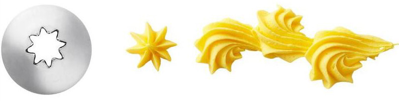 Stjärntyllen nr 21 från Wilton är perfekt för att skapa vackra tårtdekorationer i smörkräm, grädde, frosting och mer. Med denna metalltyll kan du spritsa eleganta blommor, bårder, snäckor och andra mönster på tårtor, cupcakes och kakor.