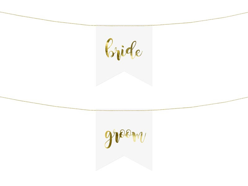 - Paketet innehåller en skylt med ordet ”bride” och en med ”groom” i metallic guld