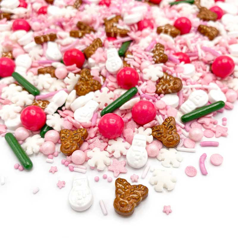 Strössel Rudolph & Friends från Happy Sprinkles är en färgglad strösselmix som passar perfekt för att dekorera dina julbakverk. Den innehåller bland annat söta renar och snögubbar i rosa, brunt, vitt och grönt. Med en vikt på 90 g kommer denna strössel att ge en söt touch till dina bakverk och sprida julglädje.