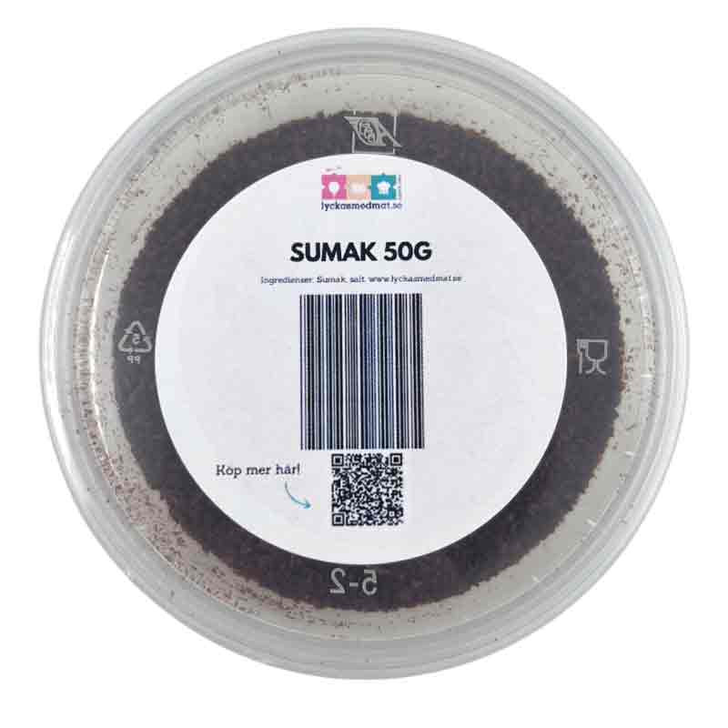 Sumac eller Sumak är en krydda som passar utmärkt till fisk, fågel och kött. Den har en fräsch och syrlig smak med en ton av sälta, perfekt för marinader, dressingar och ris. Ursprungligen från Iran och Turkiet, kommer denna malda röda Sumac i en praktisk metallburk med tättslutande lock för lång hållbarhet. Många kunder rekommenderar Sumak som ett spännande tillskott till matlagningen.