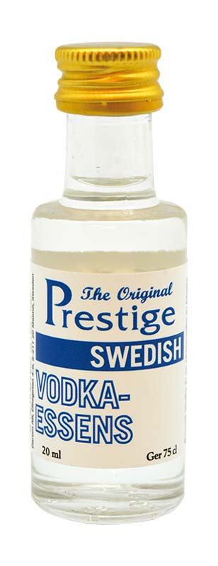Swedish vodka drinkessens från Prestige är en essens som blandas med okryddat brännvin för att skapa en högkvalitativ svensk vodka. Den kan avnjutas som snaps, i kaffe eller blandad med läsk. Med en flaska som räcker till 75 cl brännvin är det enkelt att smaksätta din sprit själv.