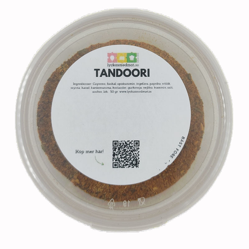 För att få den autentiska smaken, marinera ditt kött över natten i en mix av tandoori krydda och yoghurt. Passar också perfekt till grillade grönsaker eller som kryddning på popcorn eller nötter för en exotisk twist.