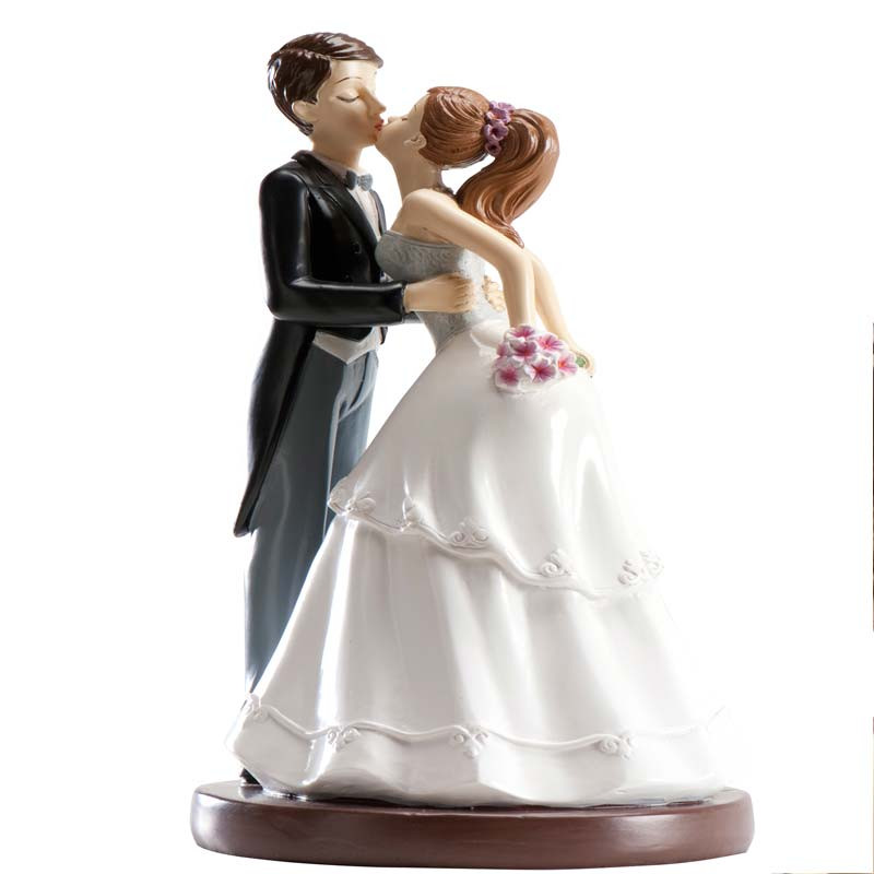 Tårtdekoration till bröllop – pussande brudpar, 16 cm