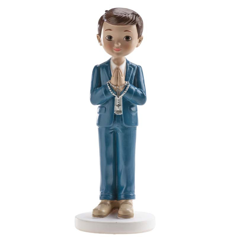 Dekorera din högtidstårta med denna vackra tårtfigur av en pojke i blå kostym med ett kors och rosenkrans från Dekora. Passar perfekt för konfirmation eller första kommunion och kommer att göra firandet ännu mer minnesvärt.