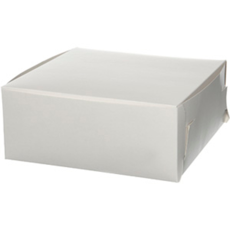 Denna kvadratiska tårtkartong med fast lock är tillverkad i tjock vit papp och är perfekt för att förvara och transportera bakverk och tårtor. Den är enkel att montera ihop och kan återanvändas, vilket gör den både praktisk och hållbar.
