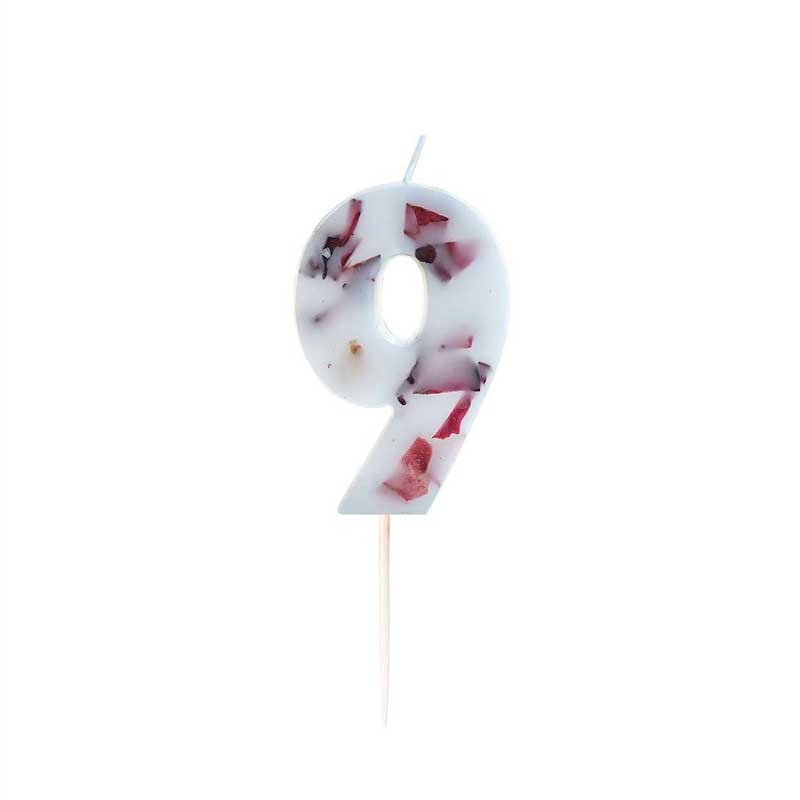 Tårtljus pressade blomblad, sifferljus 9