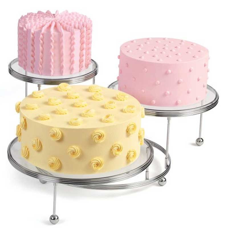 Tårtställning 3 våningar, transparent och stål – Wilton